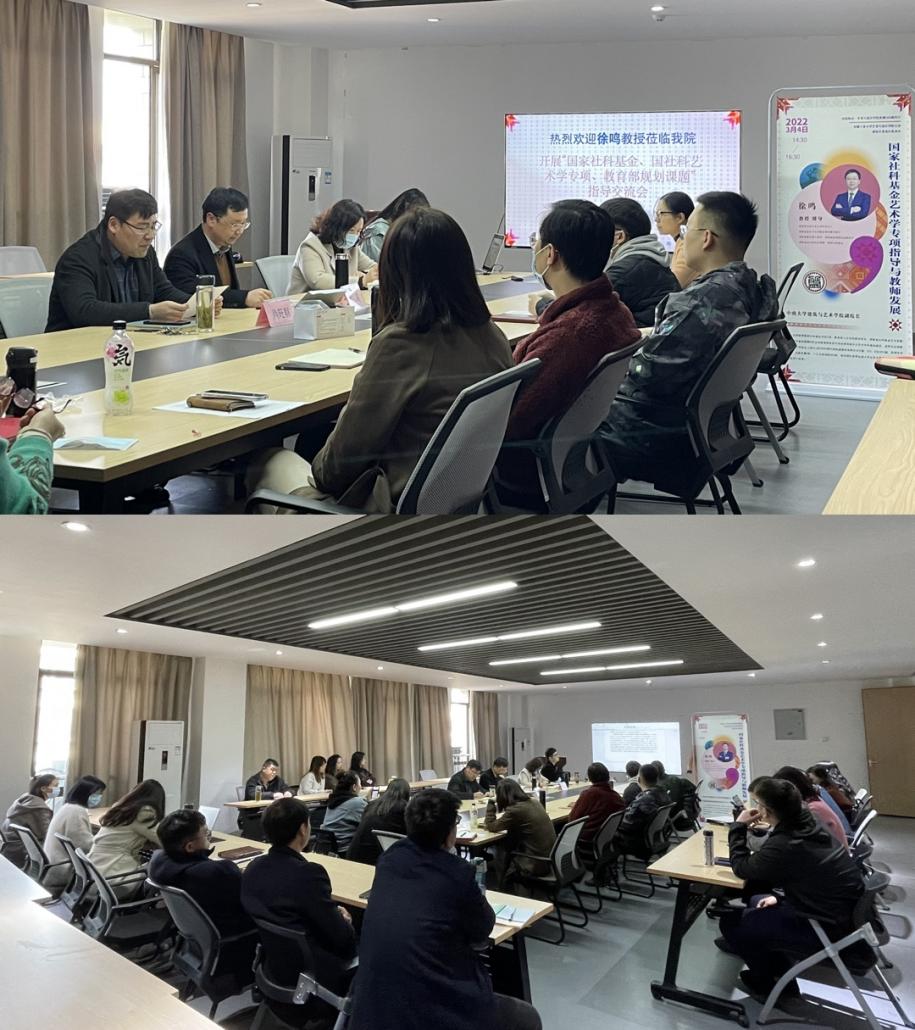 会议共分三个环节。首先,是国家级基金项目申报书指导环节,先由学院遴选的6位国家级基金项目申请人简要汇报申报书,再由徐鸣教授分别就申报书存在的问题与不足展开深入指导;其次,是青年教师科研工作交流互动环节,就青年教师代表提出的科研工作、研究方向与未来发展等方面的问题,徐鸣教授都给与一一解答;最后是国家社科基金申报成功经验分享环节,徐鸣教授结合自身获批立项的2项国家社科基金项目,与大家分享了成功申报经验以及国家社科基金申报中的一些关键核心要点等。