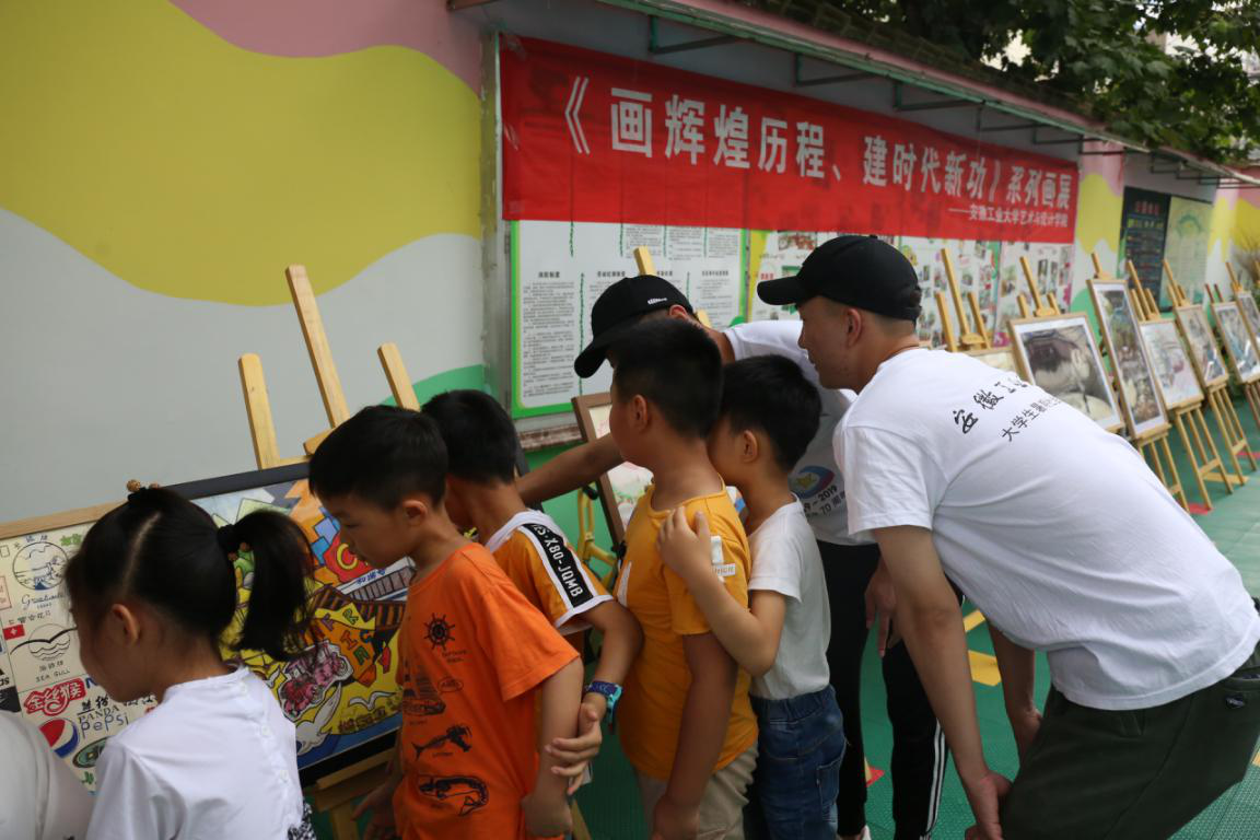 结合专业优势组建的一支艺术创作小分队,长期深入基层“种文化”,开展送文艺进社区、进公园、进学校等一系列美育普及活动。实践队前期曾与珍珠园社区、安工大幼儿园进行了“结对子”并开展多项画展、文艺展演等活动。