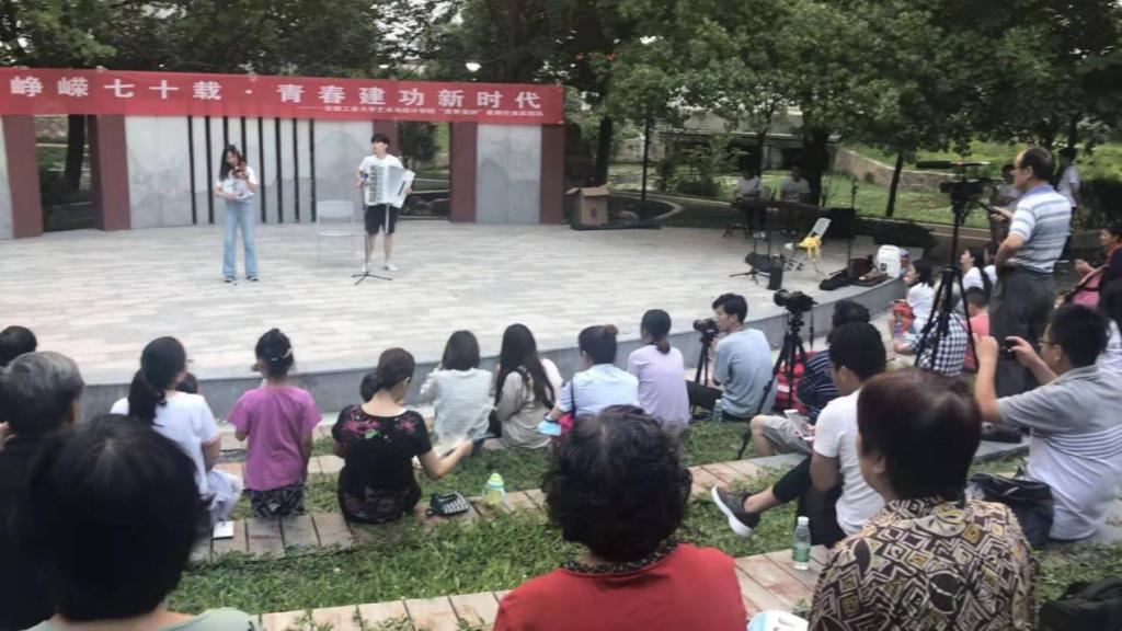 此次暑假,实践队一行30余人不畏酷暑,走进马鞍山南湖公园三匹马广场,开展了以“献礼峥嵘七十载·青春建功新时代”为主题的暑期社会实践活动,给市民们带来了丝丝清凉。实践活动包括“庆祝新中国成立70周年”的主题系列画展以及以器乐欣赏为主的高雅艺术汇演。主题画展向广大市民群众再现了祖国七十年的辉煌历程与时代社会变迁。古筝、二胡、手风琴、电钢、小提琴等东西方、传统现代相结合的器乐演奏,使现场的市民群众在艺术和美的浸润中更加感性、更加深刻地体会到国家和民族的气质精神。前不久,实践队还走进了桃源街道马鞍山新星幼儿园开展“结对子种文化”的美育课堂活动,通过带小朋友一对一进行手工制作和绘画等方式,培养他们丰盈的审美认知和审美情感,让美的种子在每个孩子的心中生根发芽。