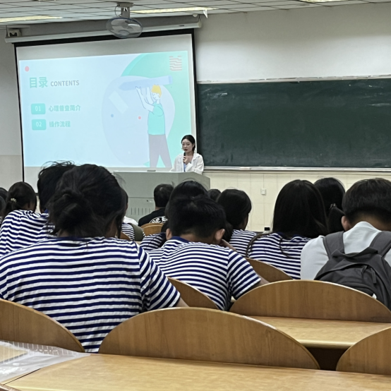 宣讲会上,胡贞雅首先就开展心理普查活动的重要意义展开介绍。结合自身经历,她认为通过心理普查活动能够帮助新生树立正确的心理健康观念,深入了解自身的心理健康情况,以便学校能够及时有效地为有需要的新生提供心理帮扶。随后,2023级新生在指导下完成了本次心理健康状况普查活动。