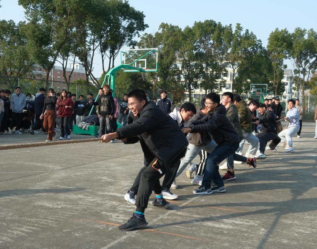 在秀山校区阶教篮球场举办2023年新生拔河比赛。本次比赛由院团委学生会体育部主办,2023级全体学生参加。