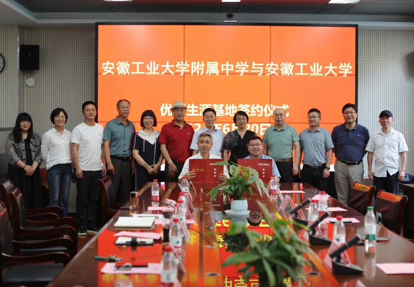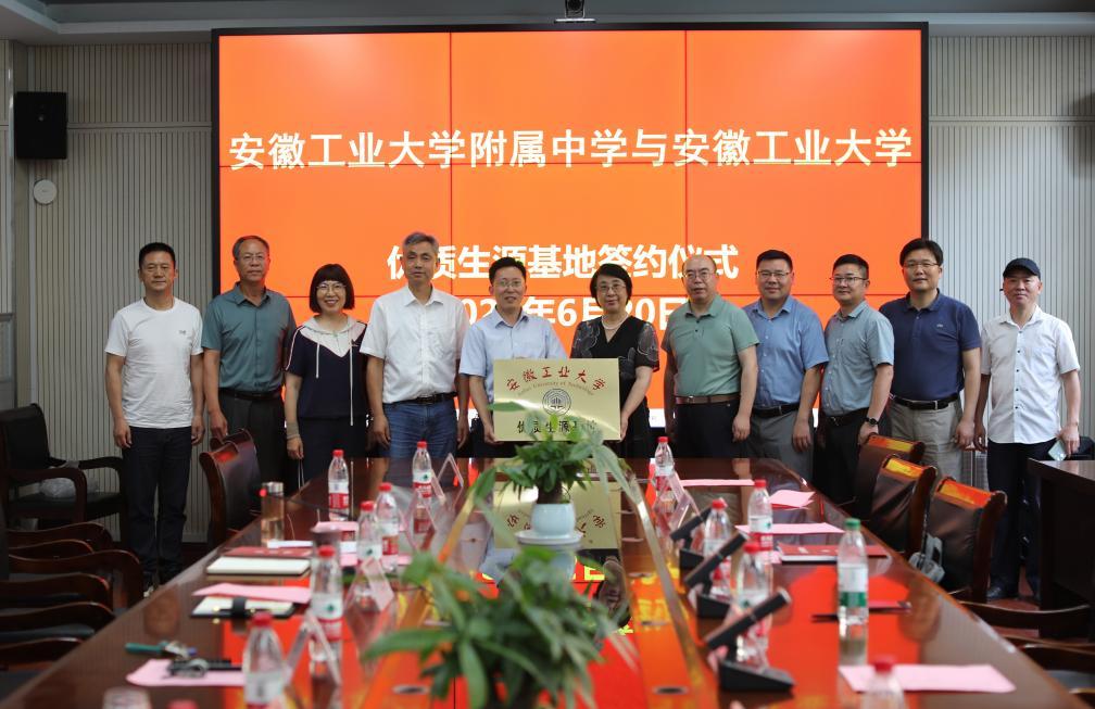 肖旺群与红星中学和安工大附中负责人在优质生源基地建设合作协议上签字。顾明言代表学校向红星中学和安工大附中授予了“优质生源基地”牌匾。
