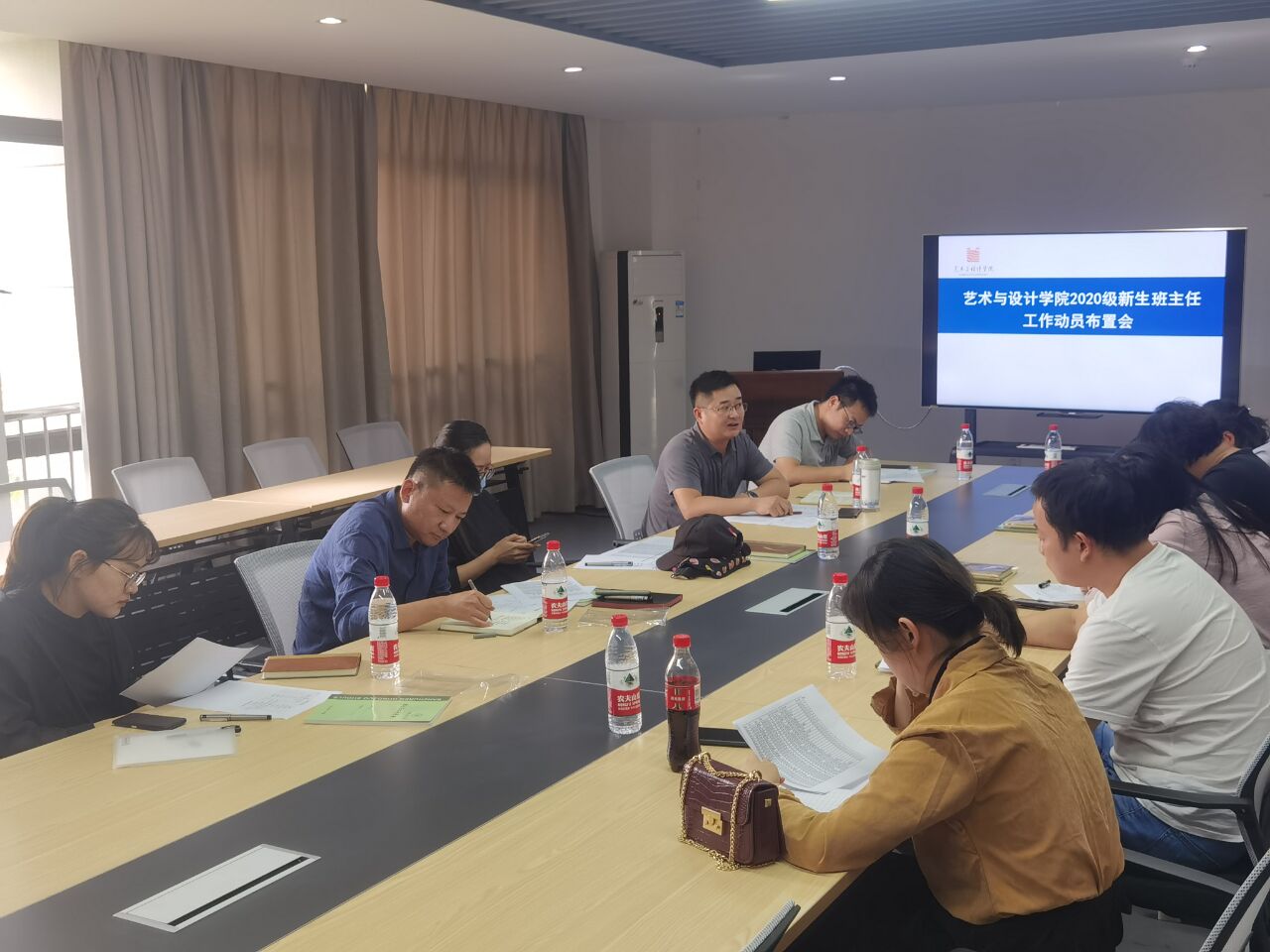 2020级新生班主任工作研讨布置会在艺设楼506会议室召开。院党委副书记、副院长方勇,院团委书记兼2020级辅导员汪正及全体新生班主任参加了会议。会议由方勇主持。