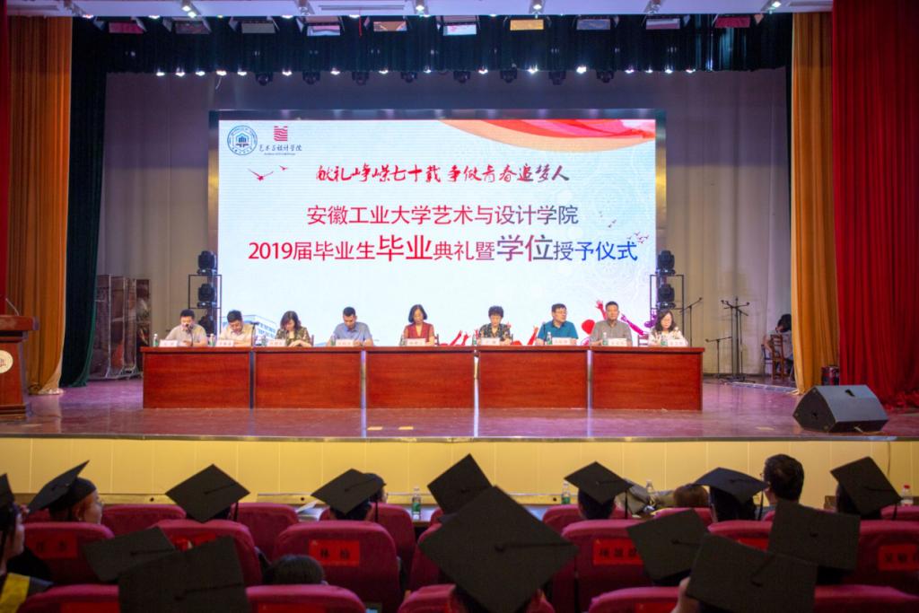 毕业典礼由学院党委副书记、副院长方勇老师主持。伴随着雄浑的国歌声,典礼正式拉开序幕。首先由副院长庄德红宣读省“双优生”、校优秀毕业生、校友联络员聘请决定和学士学位授予决定。接着,副院长肖旺群宣读了2019届毕业设计优秀作品表彰决定、硕士学位授予决定。毕业生代表工设151班王生平和在校生代表公艺171班王冬蕾分别发言,导师代表陈静波老师也给毕业生们送上了最诚挚的祝福,并勉励他们勿忘初心,再接再厉。