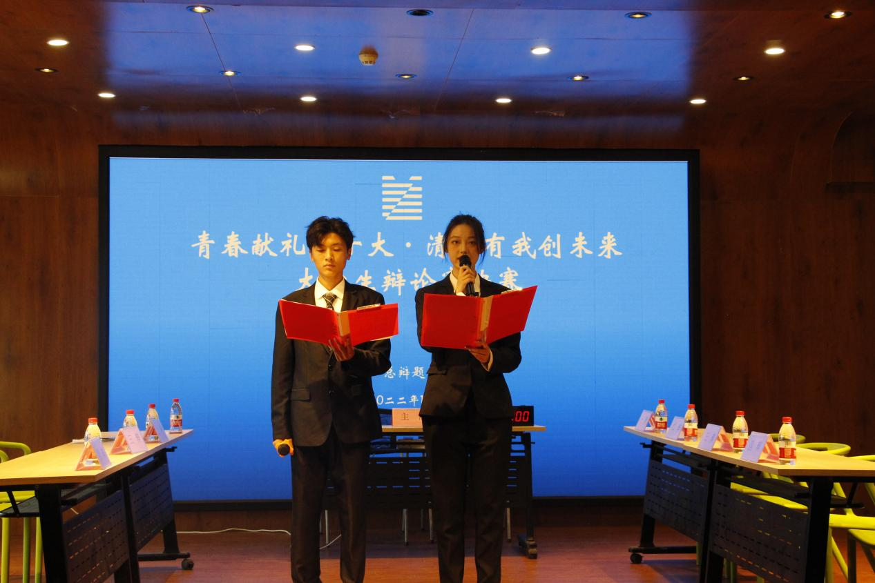 10月15日下午,艺设学院举办“青春献礼二十大,青春有我创未来”辩论赛决赛。由党委书记张为清,党委副书记、副院长方勇,院团委书记、2020级辅导员汪正,2021级辅导员罗凡,2022级辅导员秦艳秋担任评委,2021级、2022级学生观看此次辩论赛。