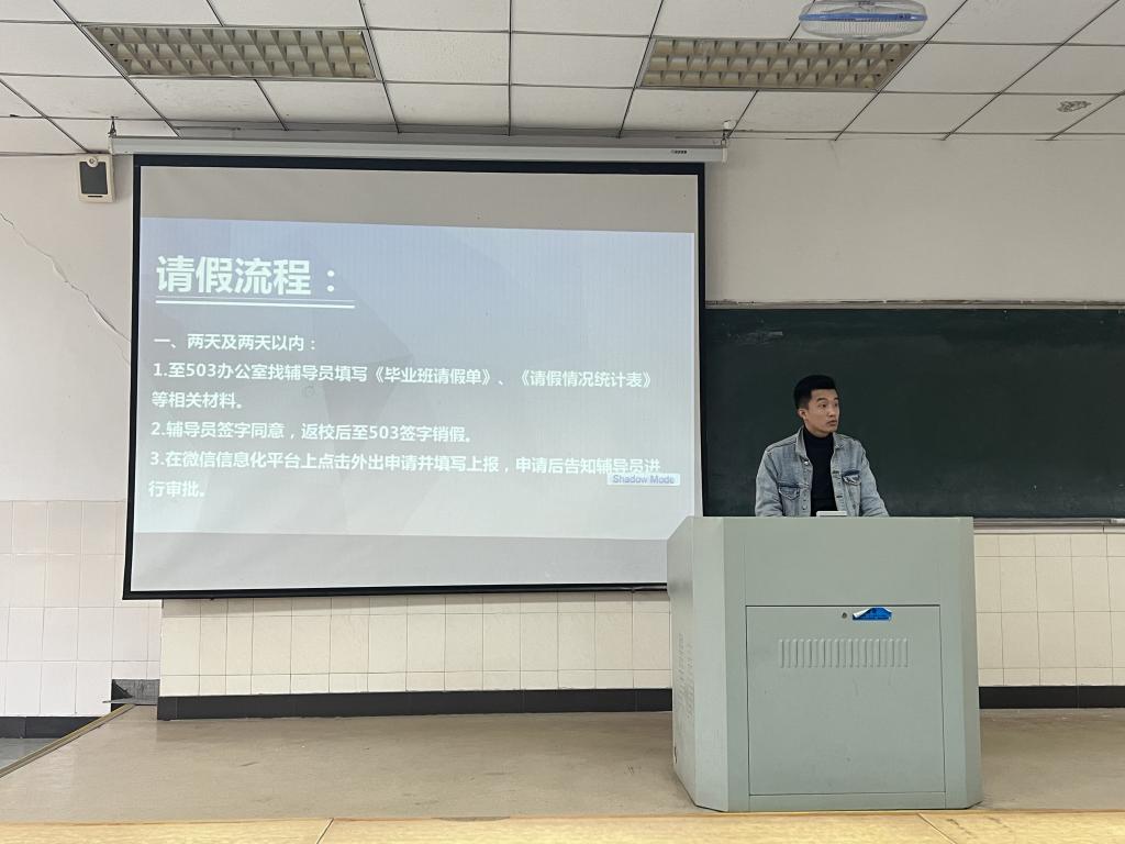 针对2018级,年级辅导员李亚飞对疫情防控、春季传染病防治、预防电信诈骗等常态化工作进行了强调,除此之外还重点对与毕业生密切相关的就业、考研复试、考公、征兵等工作做了重点提醒。年级辅导员孙海澄则对毕业生请假流程规范、安全维稳等日常管理工作进行了提醒。