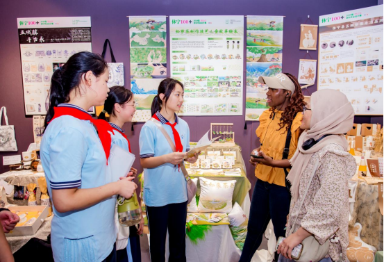 展览中,中外学生就作品展中的中国传统文化和地方物产设计理念进行了热烈的交流,通过领队老师介绍,学生们感悟到了吃瓜网