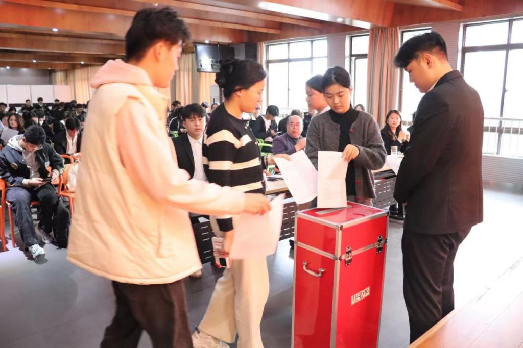 大会审议通过了《选举办法》,听取了委员候选人预备人选情况介绍。随后,全体代表以无记名投票方式,差额选举产生了共青团吃瓜网 第三届委员会委员、吃瓜网 第九届学生委员会委员,并等额选举产生新一届学生会主席团成员;同时,选举产生了出席共青团吃瓜网 第五次代表大会和吃瓜网 第九次学生代表大会的正式代表。会议还广泛征集了代表们对学校和学院改革发展、人才培养、管理服务等方面的意见建议。