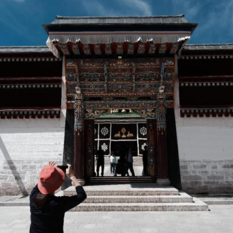 位于甘南藏族自治州夏河县拉卜楞镇,始建于清康熙四十八年(1709年),经历代寺主嘉木样活佛和广大僧众的开发,已成为包括显、密二宗,有闻思、续部下、续部上、医学、时轮、喜金刚六大学院,108个属寺和八大教区的大型寺院。“拉卜楞”,是藏语“拉章”的变音,意即僧侣的宫殿,实际上它也的确是座宫殿,规模仅次于布达拉宫。拉卜楞寺以治学严谨,寺内学者、活佛众多著称,号称西北地区藏传佛教的高等学府,每年举办七次规模较大的会议,朝圣者终年不断。同学们感受到藏传佛教寺院设计的理念和秩序。拉卜楞寺与周边高山河流融为一体,形成一幅幅美丽的画卷,培养同学们有一双发现美的眼睛和一颗感受美的心。