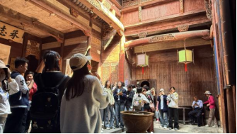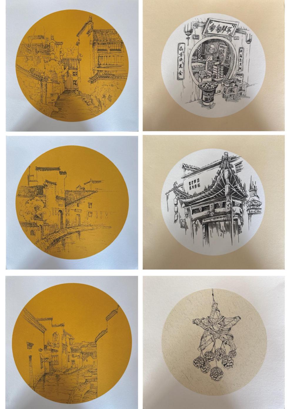 作为“流动的清明上河图”,屯溪老街承载着徽商文化的历史记忆。屯溪老街是保存完好的明清商业街,有很多老字号店铺,徽派建筑风格,还有手工艺品、美食等。同学们通过参观当地的非遗工作室及商业空间,了解了徽州书法、徽州雕刻等传统技艺。老师鼓励学生将非遗文化元素融入绘画作品,通过绘画的形式传承和弘扬徽州文化。