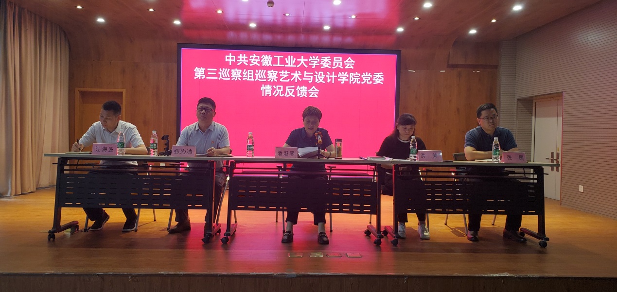 党委反馈会在艺设401召开。党委巡察工作领导小组副组长、校纪委书记、巡察专员潘淑琴、校第三巡察组全体成员、学院全体教师参加会议,学院党委书记张为清主持会议。