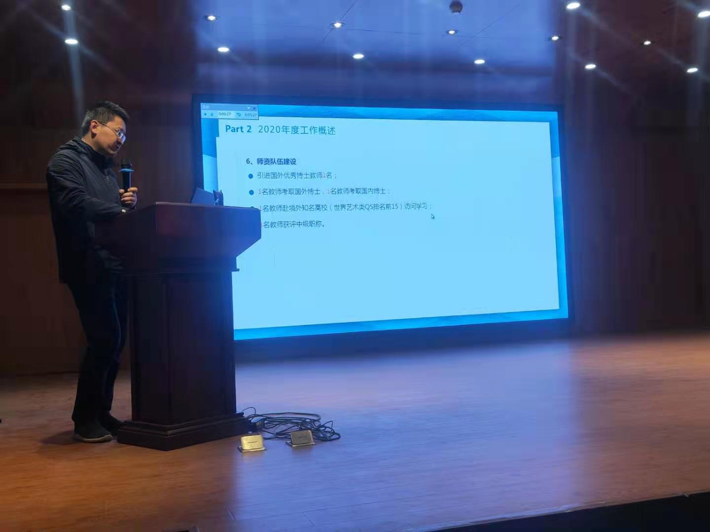 副校长顾明言在指导讲话中指出,艺设学院要充分发挥专业特色,要在校园文化建设、艺术+思政、意识形态的各方面做出贡献。目前学校和学院的发展面临机遇和挑战,无论在国家级课题、一流专业等各方面,都要付出巨大努力。要在学校党建和事业发展中做出自己的贡献,年轻教师要把自己职业发展与学校事业发展紧密结合,在学校发展大潮中努力奋进,做出贡献的同时,也提升了自己的内涵。相信在学院党委的领导下,艺设学院全体教职工一定会凝心聚力,谋划好“十四五”,为建党100周年献礼。