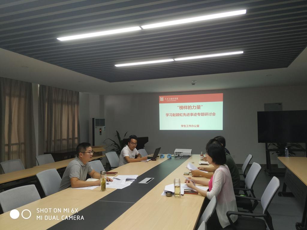 赵颖虹老师的优秀事迹进行了专题学习并展开热烈讨论。学院全体辅导员、党支部书记参加了本次会议。会议由学院党委副书记、副院长方勇主持。