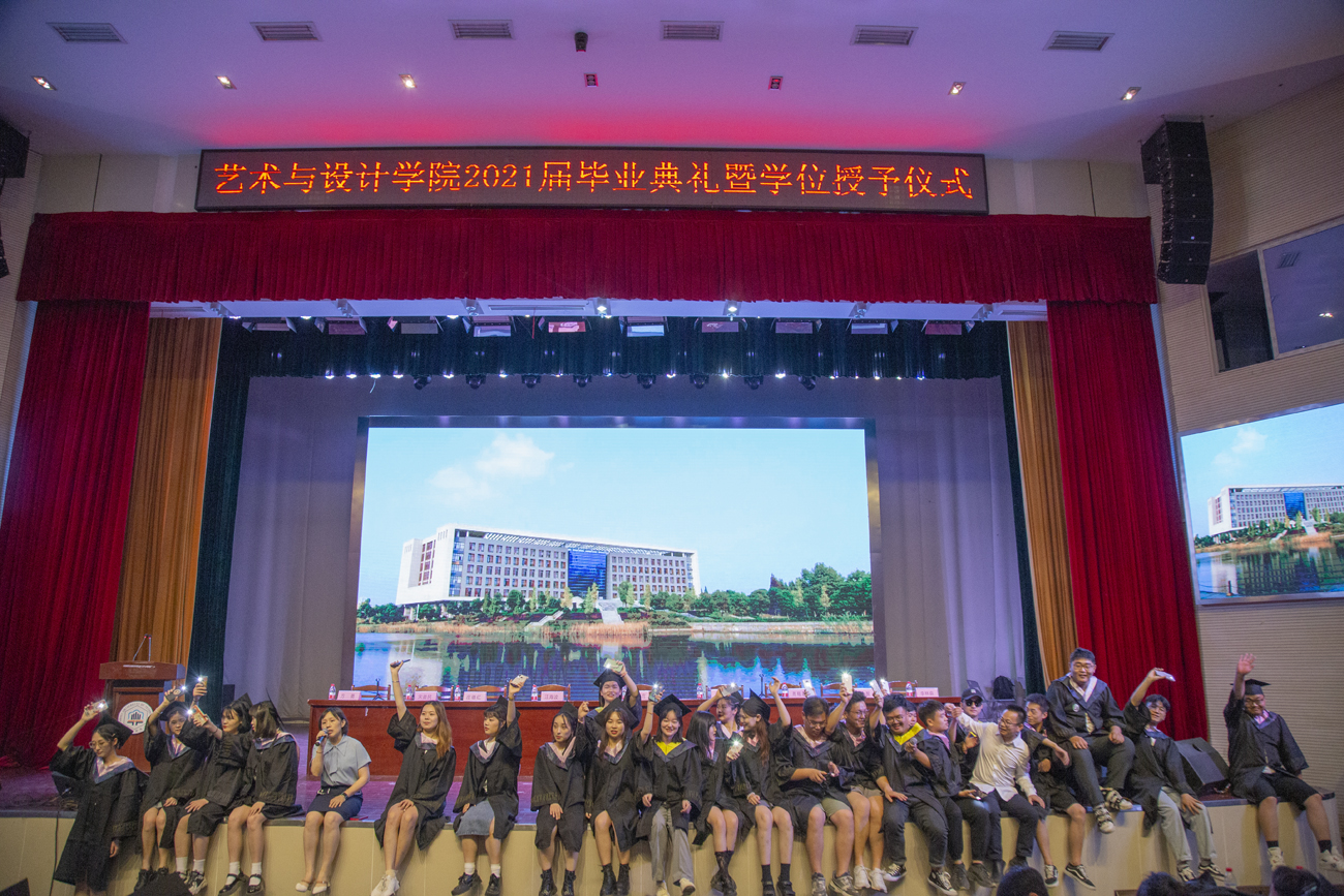 全体党政领导与全体师生向学业有成、即将踏上人生新征途的毕业生们表示热烈的祝贺,向多年来辛勤培育学生成长成才的全体教职工表示深深的敬意与衷心的感谢。同时指出,今年是中国共产党成立100周年,走出校门,同学们将肩负着时代赋予的重要使命。以师长的名义,他向同学们提出了三点希望:一是要坚守信念,始终秉持对艺术的热情。无论将来从事平面、环境,还是设计、美学,都希望同学们能始终坚守对美的追求、对生活的热爱、对万物的新鲜感,不断攀登设计创作的高峰。二是要明德修身,始终胸怀对家国的情怀。希望同学们能用心感悟时代变迁,将个人艺术理想融入构建中国梦的伟大实践中,创作出更多有道德、有筋骨、有温度的艺术作品。三是要积极进取,始终保持对卓越的追求。不断接受新的思维与挑战,不断实现新的超越和创造,在新时代的机遇里,有坚持,有担当,有作为,有收获。