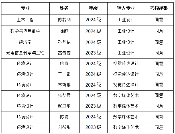 根据教务处《关于开展2025年学生转专业工作的通知》有关工作程序和要求,学院严格按本院考核办法完成了申请转入学生的考核工作,结果如下:
