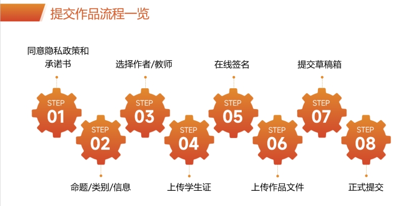 第3步:网上提交:在作品提交平台注册,按流程正确填写信息并按要求上传作品。作品上传成功后,系统自动生成唯一对应的参赛编号、参赛报名表及承诺书,同时所有参赛者须仔细阅读承诺书。
