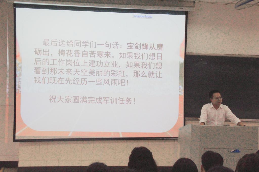 汪正用“宝剑锋从磨砺出,梅花香自苦寒来”寄语新生们,要打起精神、强健体魄,用最好的状态迎接军训!