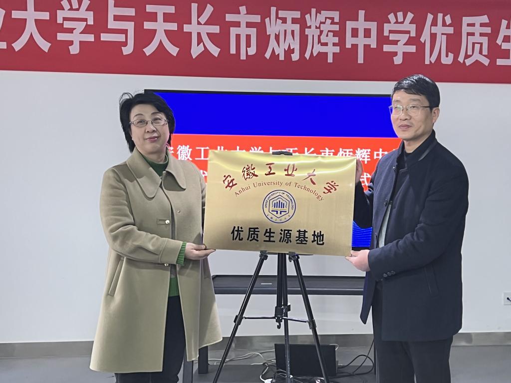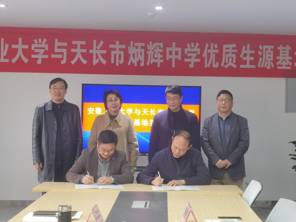 艺术与设计学院党委副书记方勇和炳辉中学党委副书记郭少林共同在优质生源基地建设合作协议上签字。顾明言副校长代表学校向天长市炳辉中学授予了“优质生源基地”牌匾。 (撰稿:秦艳秋 审核:罗凡 汪正 方勇)