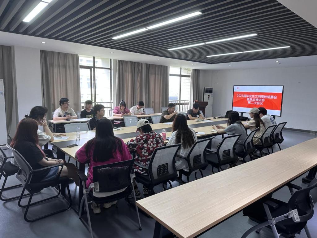 2023届毕业生就业已经进入关键期和攻坚期,为全面推进毕业生就业工作,实现毕业生更充分更高质量就业,艺术与设计学院于6月7日在艺设楼506室召开学生干部促就业工作推进会。院党委副书记、纪委书记、副院长方勇,团委书记汪正,辅导员孙海澄以及毕业生班长和团支书、文明离校组委会全体学生干部参会。