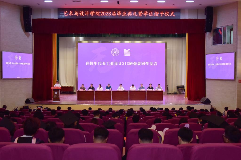 艺术与设计学院2023届毕业典礼暨学位授予仪式于6月12日下午四点,在秀山校区大学生活动中心隆重举行。副校长顾明言,学院党委书记张为清,党委副书记、院长汪海波,党委副书记(纪委书记)、副院长方勇,副院长肖旺群,副院长庄德红,教师代表,全体辅导员以及在校生代表出席典礼。典礼由党委副书记(纪委书记)、副院长方勇主持。