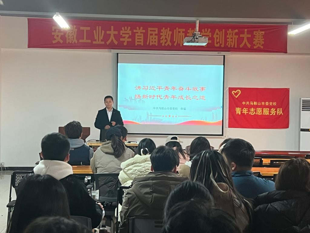 12月3日下午,马鞍山市委党校青年教师韩猛同志为艺术与设计学院全体学生党员带来了一次深刻的微党课。本次党课学习的主题是“讲习近平青年奋斗故事,悟新时代青年成长之道”。