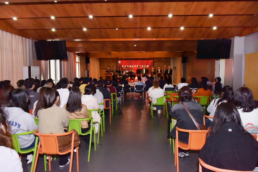 为培育创建“全省党建工作示范高校”,构建“三三五”党建工作大格局落实落细,4月12日下午四点,艺术与设计学院首期艺术党课在艺设楼401举办,校团委书记赵颖虹、校宣传部副部长黄敏、校学工部副部长俞超、校组织部副处级组织员许小虎受邀观摩指导。学院邀请红星中学以及安工大附中学生代表以及各党支部党员及入党积极分子参与,艺术党课的主题为“不忘初心、牢记使命”,主创成员为中国音协、安徽省音协、马鞍山市音协等多位歌唱家、安徽工业大学音乐专业青年教师等。