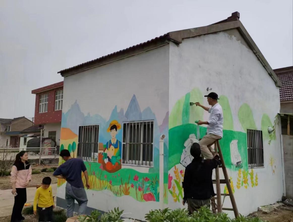 4月14日,艺术与设计学院公共环境艺术系师生一行来到和县历阳镇兴圩村开展“文化墙绘艺术进乡村”实践活动,同时,师生身体力行给村庄公共墙面绘制了美丽的画卷。