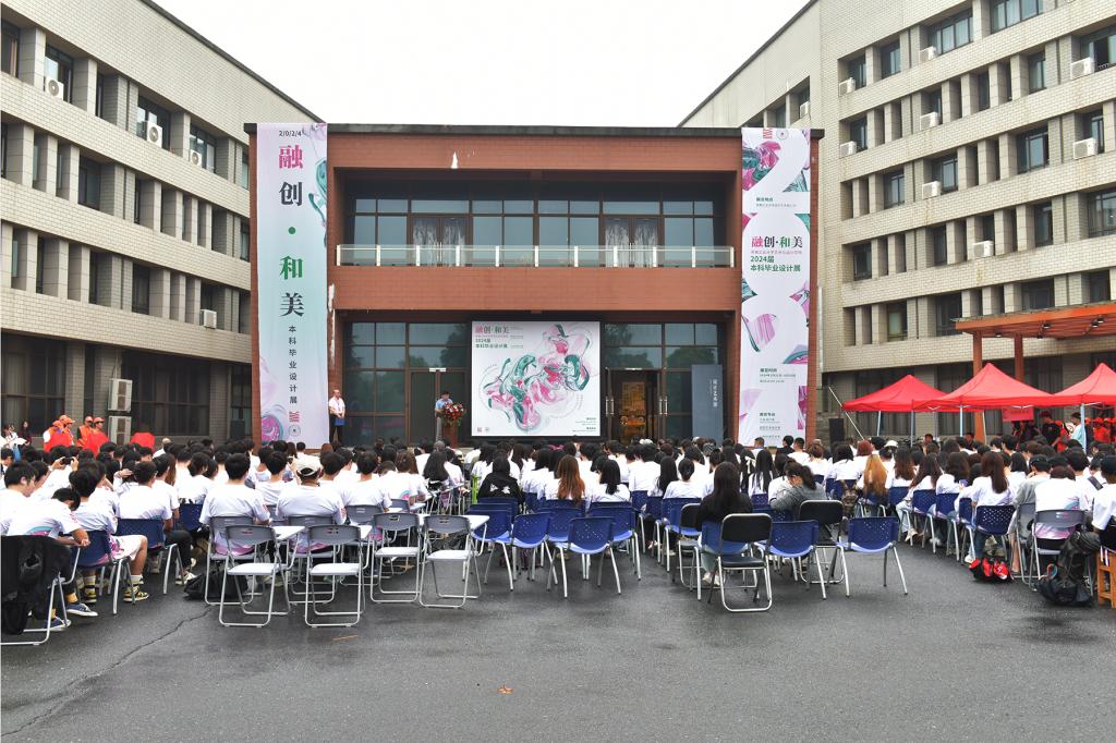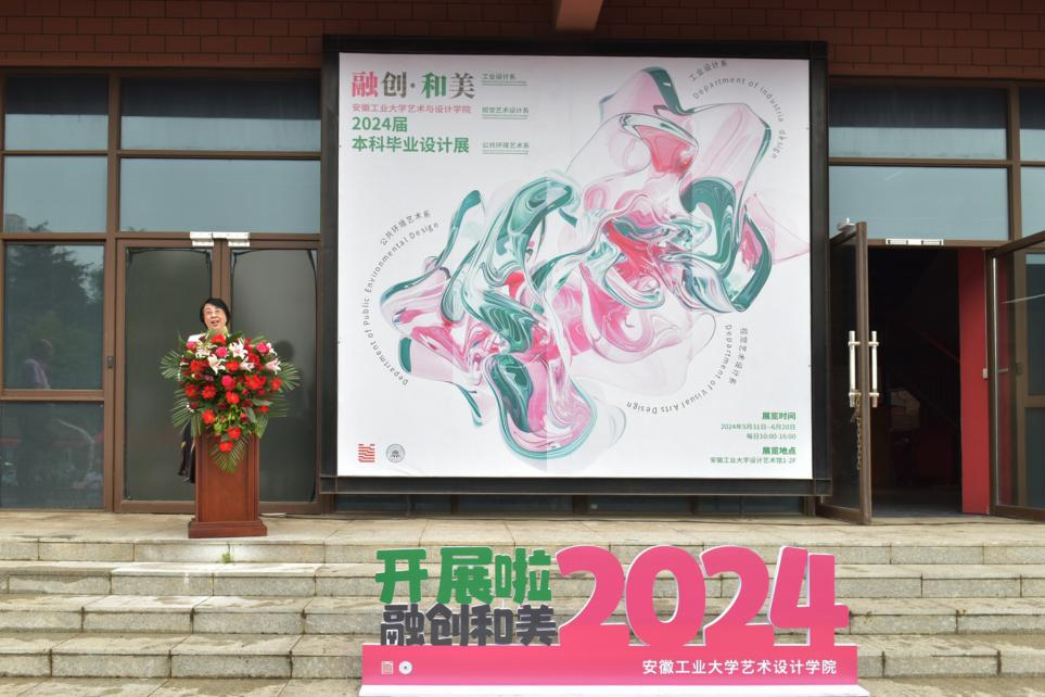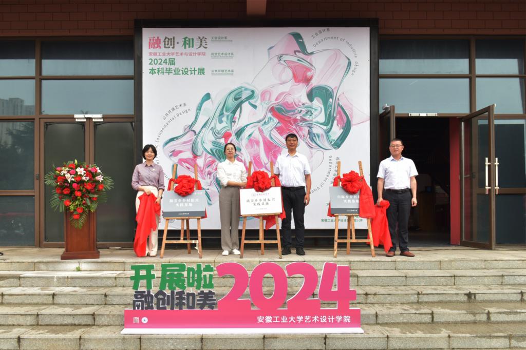 5月31日上午,艺术与设计学院2024届本科生毕业设计作品展在秀山校区设计艺术馆广场盛装开展。校党委常委、副校长顾明言,马鞍山市委宣传部副部长、市文明办主任陈学明,休宁县人民政府副县长李文喜,“当涂民歌”国家级非遗传承人陶小妹,北京小米科技有限公司小米生态链设计部工业设计负责人、院工业设计专业2004届校友谢迎春,南京大美天第文旅投资集团有限公司副总裁孔德银等26家企业家代表出席仪式。宣传部、研究生工作部、团委、教务处、国际交流与合作处、创新创业学院等部门负责人、优质生源基地师生代表以及艺术与设计学院师生代表参加仪式。