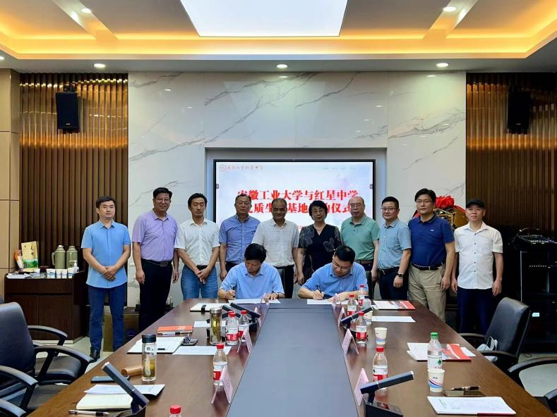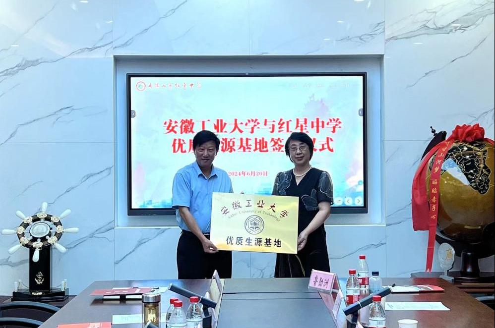 肖旺群与红星中学和安工大附中负责人在优质生源基地建设合作协议上签字。顾明言代表学校向红星中学和安工大附中授予了“优质生源基地”牌匾。