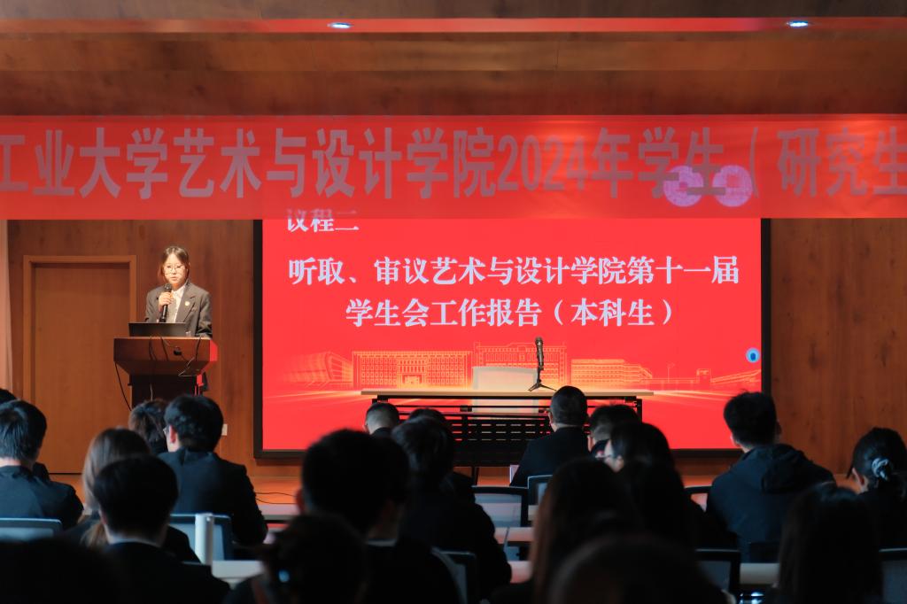 首先由学院第十一届学生会主席刘铭璇进行工作报告。她总结了上一年度学院学生会的工作情况,鼓励在场同学积极参与学院建设,为学院的繁荣发展贡献自己的力量。