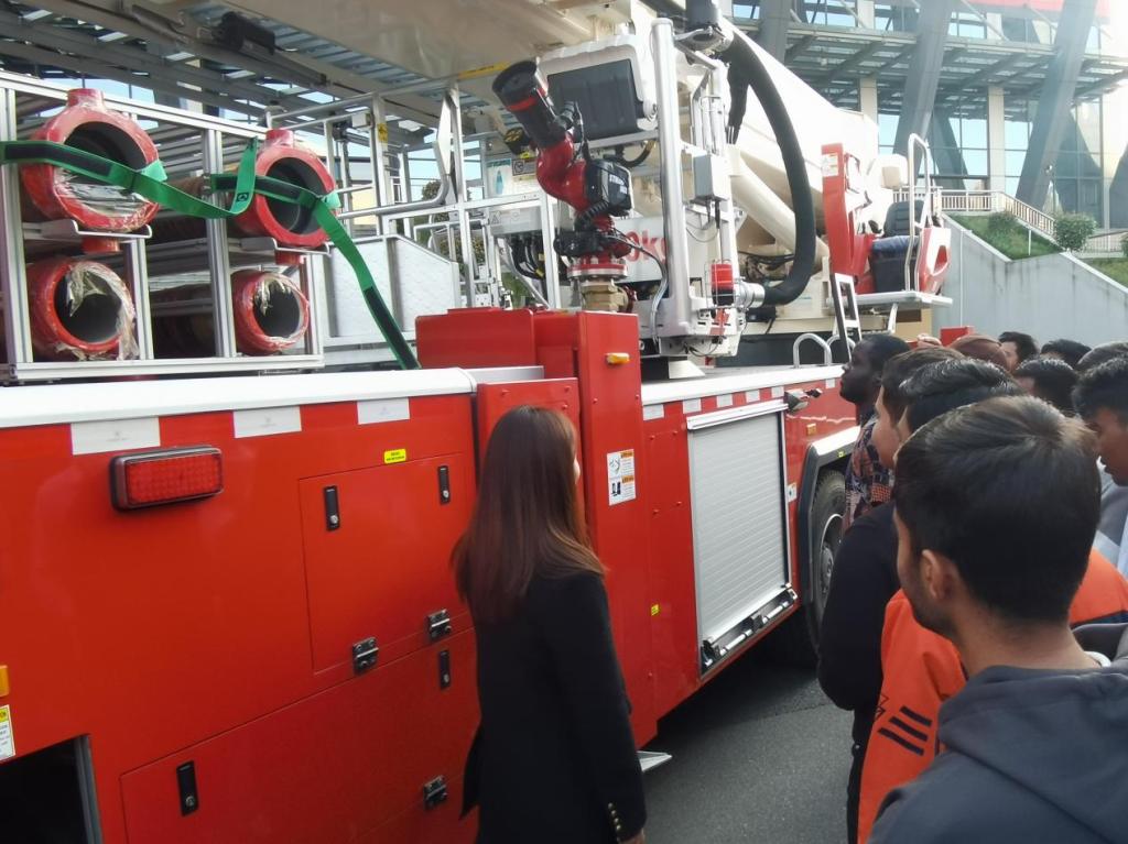 活动当天,新生们在学院的组织下,准时来到活动现场。新生们在消防员和学院辅导员的指导下,迅速按照预设的疏散路线有序撤离,整个过程紧张而有序。在模拟疏散环节结束后,消防员还为新生们展示了各类先进的消防装备,并详细介绍了各种消防器材的用途和使用方法。新生们纷纷上前参观学习,与消防员互动交流,现场气氛热烈。