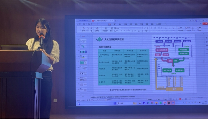 讲座中,刘入豪博士围绕人类与智能体信任生成机制展开深入讲解,结合其在智能传播和国际传播领域的研究,运用定量、定性等多样化研究方法,从社会学、人类学等跨学科视角,剖析智能媒介技术与社会福祉的关联。现场师生积极提问,与刘博士就相关学术问题进行了热烈探讨。