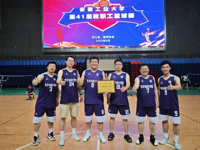 安徽工业大学第41届教职工篮球赛决赛在秀山校区体育馆落下帷幕。艺术与设计学院教职工篮球队以全胜战绩获得乙组冠军,成功锁定2026年甲组参赛资格,为学院体育事业书写新篇章。