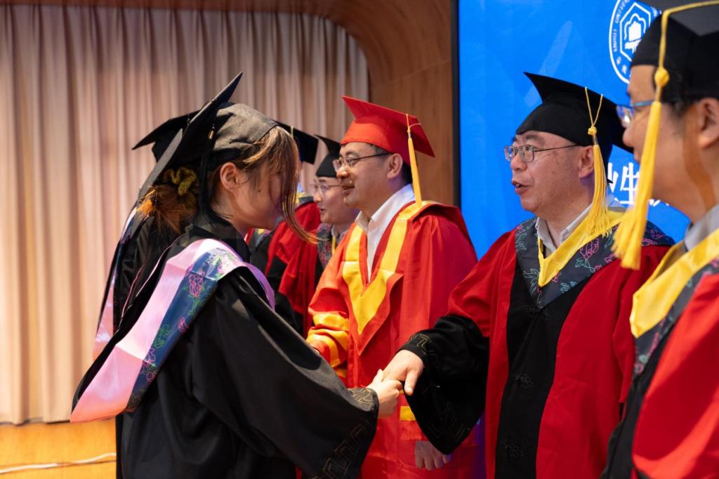 仪式上,副校长郑啸为研究生省优秀毕业生颁发荣誉证书,副院长佘醒宣读学士学位授予决定,副院长宋益民宣读硕士学位授予决定,毕业生代表刘铭璇带领毕业生庄严宣誓。伴随着庄重的乐曲,与会领导和嘉宾为毕业生逐一拨穗正冠、颁发学位证书并合影留念。