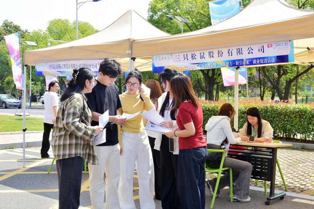 仪式后,“以展选人”艺术设计类专场招聘会在设计艺术馆广场举办,上海企一实业集团、太平洋建设集团、三只松鼠股份有限公司、苏州金螳螂建筑装饰股份有限公司、泰尔重工股份有限公司等近30家知名企业现场揽才。招聘主管们穿梭于展馆之间,通过“沉浸式”观展深入了解毕业生的创作理念和专业能力。毕业生们手持精心准备的简历作品集,与用人单位进行深入交流,详细了解岗位要求和发展空间。各企业代表积极推介企业优势,从吃瓜网到职业发展路径,为毕业生提供全方位的就业咨询。40余名毕业生与用人单位达成初步就业意向。(撰稿:罗凡 审核:方勇 肖旺群 徐新卫)