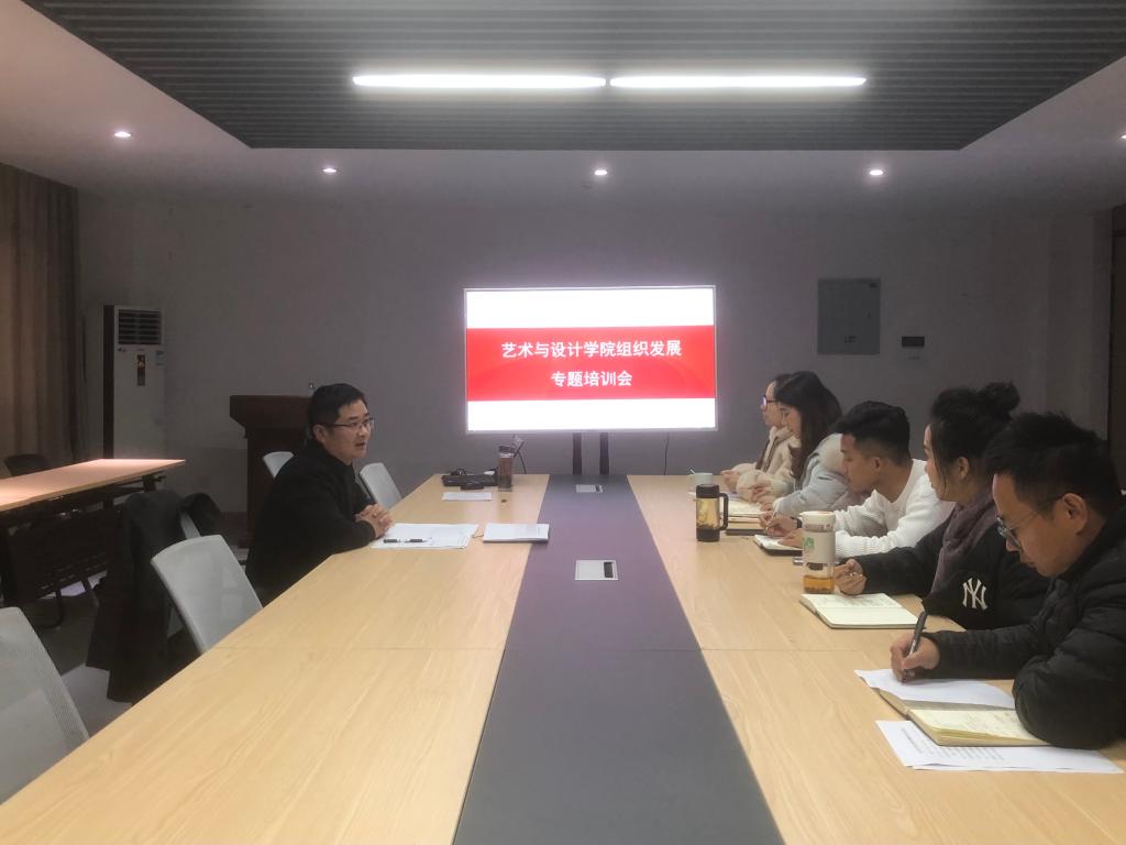 艺术与设计学院于11月30日在艺设楼506召开学工例会暨组织发展专题业务学习会,会议由院党委副书记、副院长方勇主持,全体辅导员、学生党支部书记参加会议。