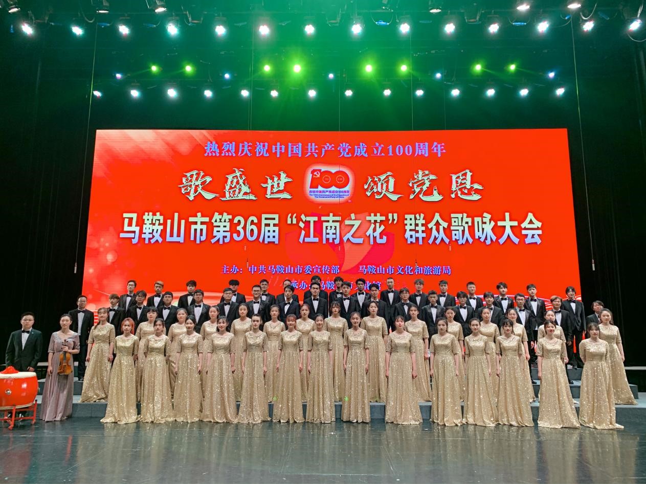 6月25日下午,由市委宣传部和市文旅局主办、市文化馆承办的“歌盛世 颂党恩”第36届“江南之花”群众歌咏大会在马鞍山保利大剧院隆重举行,我校艺术与设计学院“梦之韵”合唱团受邀参赛,演唱歌曲《您花开的样子》荣获二等奖。