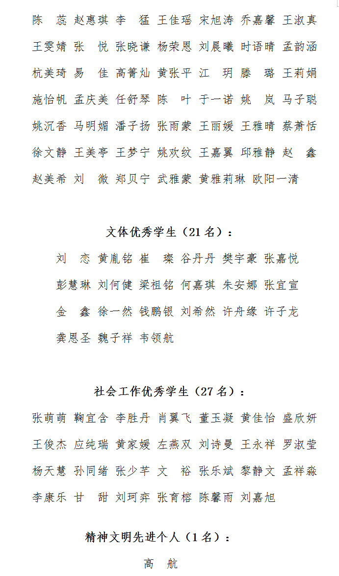 根据校学生工作部(处)《关于开展2024-2025学年本专科生评奖评优工作的通知》文件要求,经过学生本人申请,学院组织评议,现将我院先进个人评选结果公示如下: